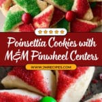 Delightfully festive Poinsettia Cookies are buttery, tender, and cream cheese-enriched cookies folded into charming pinwheels adorned with colorful M&M candies, perfect for holiday celebrations and gifting.