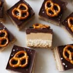 - For extra flavor, you can sprinkle a few extra crushed pretzels on the chocolate ganache before chilling.