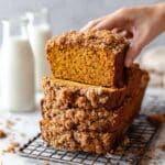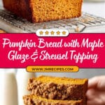 This delicious Pumpkin Bread with Maple Glaze combines moist, spiced pumpkin bread topped with a crunchy pumpkin spice streusel and finished with a sweet maple glaze. Perfect for fall or any time you crave a cozy, comforting treat.