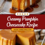 This Pumpkin Cheesecake is a rich and creamy dessert perfect for the holiday season, featuring a spiced pumpkin filling on a buttery graham cracker crust. It’s failproof, with no cracking, and offers a balanced pumpkin flavor enhanced by cinnamon and pumpkin pie spice. Serve it plain or elevate with butterscotch or caramel sauce and rum-infused whipped cream for an impressive treat.
