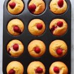 - Fill and Layer the Batter and Raspberries: Spoon enough batter into each muffin mould to fill it halfway. Place about half of the raspberries on top of this batter layer. Cover these berries with the remaining batter, distributing it evenly. Finally, top each filled mould with the remaining raspberries for a beautiful presentation and fruit burst.