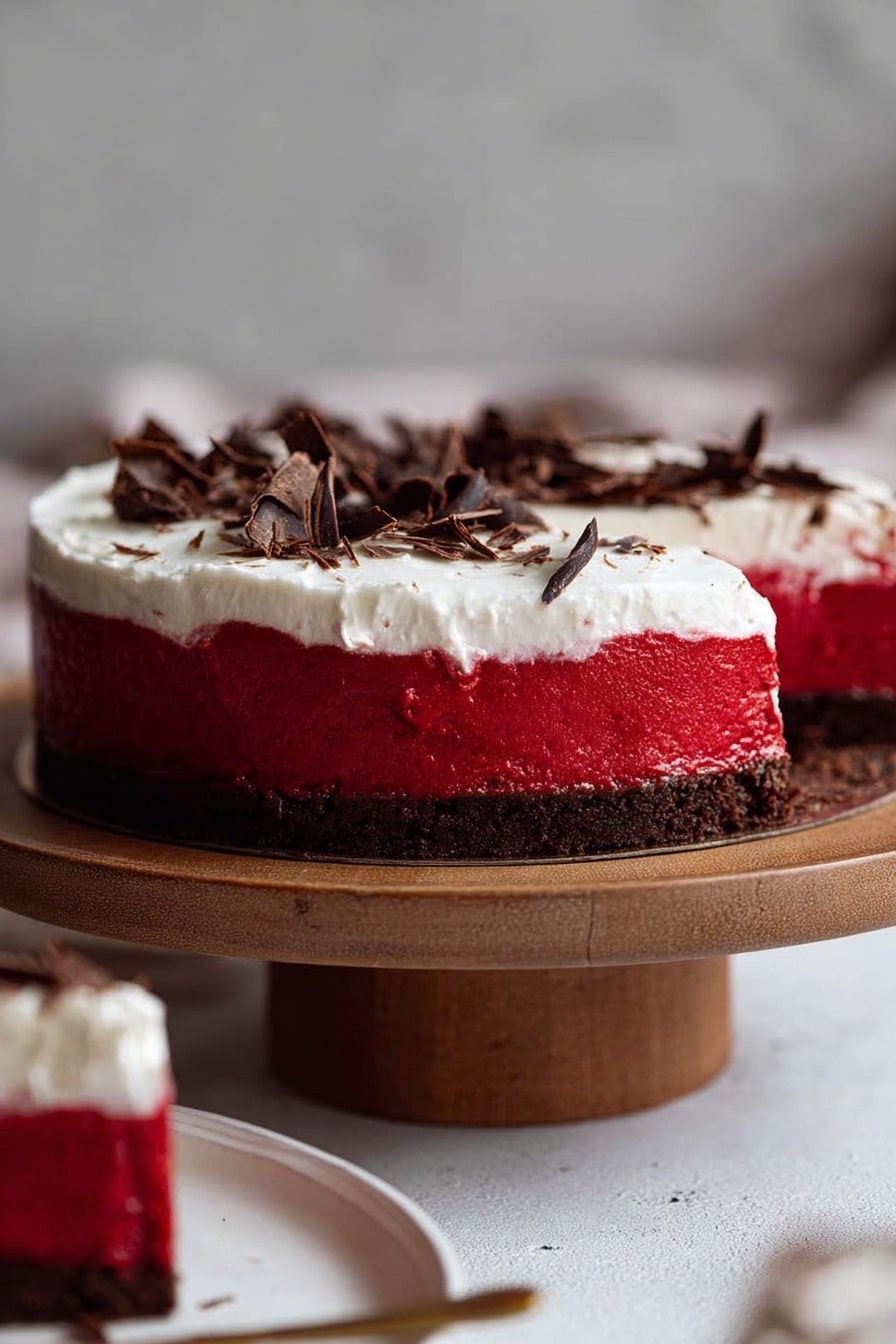- Chocolate Lovers’ Delight: Swap the red food coloring with a bit more melted chocolate for a double chocolate no-bake cheesecake variation — my family goes crazy for this richer twist!