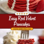 You can skip the red food coloring, but the pancakes won’t have the vibrant red hue that defines red velvet. The flavor will still be delicious, thanks to the cocoa powder and buttermilk, but visually it’ll look more like chocolate pancakes.