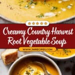 Country Harvest Root Vegetable Soup is a nourishing, flavorful soup featuring a mix of hearty root vegetables simmered with fragrant curry powder and thyme. This creamy soup is made with water instead of stock for a low-calorie option, finished with a touch of cream for luxuriously smooth texture. Perfectly comforting and flexible, it’s an ideal dish to enjoy year-round, served with warm crusty bread and a sprinkle of fresh parsley.