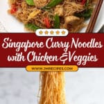 Quick & Easy Singapore Curry Noodles feature chewy rice vermicelli stir-fried with tender chicken, fresh vegetables, and a fragrant curry sauce. This restaurant-quality dish is packed with vibrant flavors, ready in just 30 minutes, making it an ideal weeknight meal that saves you time and money.