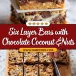 Magic Six Layer Bars are an easy, no-fuss dessert featuring a crispy graham cracker crust layered with sweetened coconut, semi-sweet chocolate chips, chopped pecans, and rich sweetened condensed milk. Baked to golden perfection, these bars offer a delightful mix of sweet, salty, crunchy, and creamy textures, making them perfect for potlucks, cookie platters, or sharing with friends.