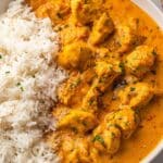 I always finish this butter chicken with a sprinkle of fresh herbs — cilantro or mint are my go-to, as they lend a fresh, aromatic lift to the rich sauce. Sometimes I mix parsley and cilantro depending on what’s in my fridge. A little extra herbs make it look pretty and taste even better!
