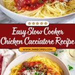 Slow Cooker Chicken Cacciatore is a rustic and comforting Italian dish featuring tender chicken thighs slow-cooked in a flavorful tomato-based sauce with garlic, Italian herbs, mushrooms, and a splash of white wine. Served over pasta and garnished with Parmesan cheese, this hearty meal is perfect for cozy dinners.