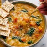 This Slow Cooker Lentil Soup is a hearty, nutritious dish brimming with vegetables and creamy red lentils. Perfect for a comforting meal, it combines slow-cooked flavors with the added crunch of homemade crispy tortilla strips, making it both satisfying and delicious.