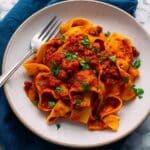 I love how versatile this Slow Cooker Pappardelle Bolognese Recipe is, so I often tweak it depending on the season or what’s in my fridge. You should feel free to make it your own, whether that means changing the meat, adding veggies, or going dairy-free.