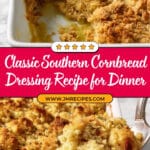 This Southern-Style Cornbread Dressing recipe combines homemade buttermilk cornbread with a savory herb-seasoned stuffing and a flavorful blend of onions, celery, and sage. Baked to golden perfection, this classic dish is a comforting side that’s perfect for holiday gatherings or family dinners.