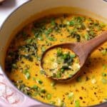 - Serve and Garnish: Remove from heat and ladle the soup into bowls. Garnish with freshly chopped cilantro leaves and sliced green onions. Serve warm, ideally with warmed naan or bread.