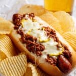 - Serve with sides: Optionally serve chili dogs with plain crinkle-cut potato chips for a traditional accompaniment. Enjoy immediately.