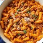 - Serve: Plate the rigatoni and garnish with additional fresh parsley and sprinkle extra Parmesan cheese if desired. Serve immediately and enjoy your spicy sausage rigatoni!