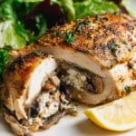 Delightfully savory stuffed chicken breasts filled with a flavorful blend of mixed mushrooms, garlic, fresh herbs, and creamy goat cheese, baked to juicy perfection with a crispy skin. This easy, elegant dish makes a perfect dinner for families or guests.