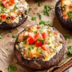 - Garnish and Serve: Remove mushrooms from the oven and garnish with the reserved fresh parsley or fresh herbs of your choice. Add additional diced red bell peppers or tomatoes for color and serve warm.