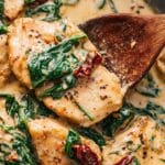 Sun Dried Tomato Chicken, also known as Marry Me Chicken, features tender chicken cutlets seared to perfection and simmered in a luscious creamy white wine sauce enriched with sun dried tomatoes, spinach, and fresh basil. This flavorful dish is perfect for a comforting dinner and pairs wonderfully with crusty bread to soak up the decadent sauce.