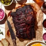 For special occasions, I like to serve brisket on a large wooden cutting board with smoked sausage, pickled veggies, and fresh bread. You can also lay out the slices buffet-style with little bowls of BBQ sauce and an assortment of sides so guests can build their own plates. It’s casual, festive, and always gets rave reviews!