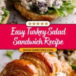 A delicious and easy-to-make Turkey Salad Sandwich perfect for a quick lunch or picnic. This salad combines tender cooked turkey with dried cranberries, celery, and a creamy dressing made from mayonnaise, sour cream, and Dijon mustard. It’s flavorful, slightly sweet, and can be served on buns, croissants, or wrapped in lettuce for a lighter option.