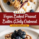 This Vegan Baked PB & J Oatmeal is a wholesome, gluten-free breakfast option that combines the comforting flavors of peanut butter and jelly with hearty oats. Perfectly spiced with cinnamon and sweetened naturally with maple syrup and applesauce, this baked oatmeal offers a nostalgic taste reminiscent of childhood, made entirely with plant-based ingredients.