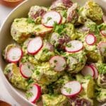 This creamy and flavorful Vegan Potato Salad is perfect for gatherings and meal prep. It features tender baby red potatoes tossed in a rich avocado and vegan mayonnaise dressing, enhanced with fresh herbs, green onions, and a touch of tangy capers. Ready in just 30 minutes, this dish is a delicious dairy-free, egg-free alternative to traditional potato salad.