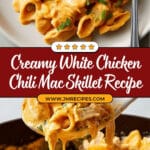 This White Chicken Chili Mac Skillet Recipe has become one of my absolute favorites for busy nights when I want something hearty but fuss-free. It brings together the best of both worlds—comforting mac and cheese plus vibrant, smoky chili flavors that keep the dish exciting. I hope you enjoy making it as much as I do and that it becomes a staple in your kitchen like it has in mine. Grab your skillet and let’s get cooking—it’s pure joy in every cheesy, spicy bite!