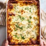 - Garnish and Serve: Let the lasagna rest for about 10 minutes before slicing. Garnish with freshly minced parsley and serve warm.